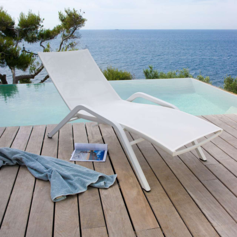 Les Jardins Yolo Stackable Sunlounger White Frame, Gray/White Sling